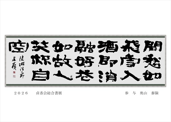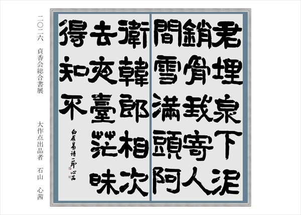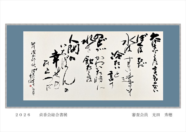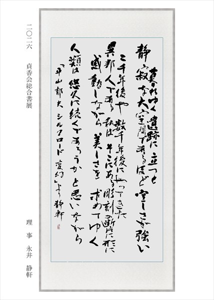 貞香会では年間2回の書展を開催しています。左側の各書展名をクリックすると出展作品をご覧頂く事ができます。