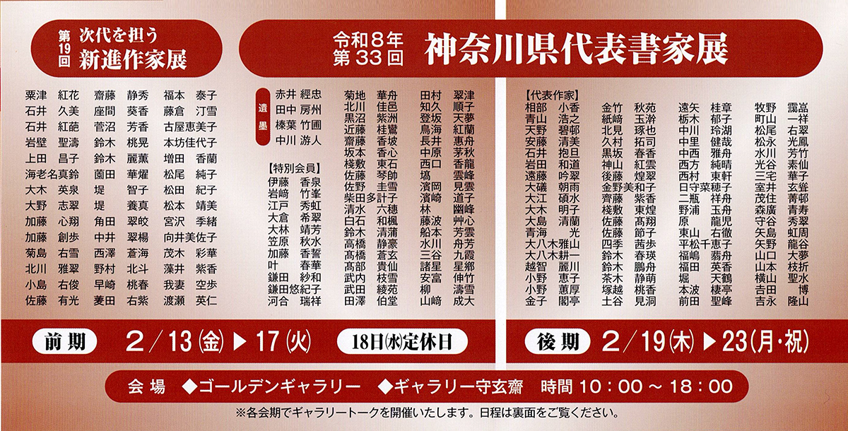 | 【第33回神奈川県代表書家展】のご案内 | 2026.2.19 |